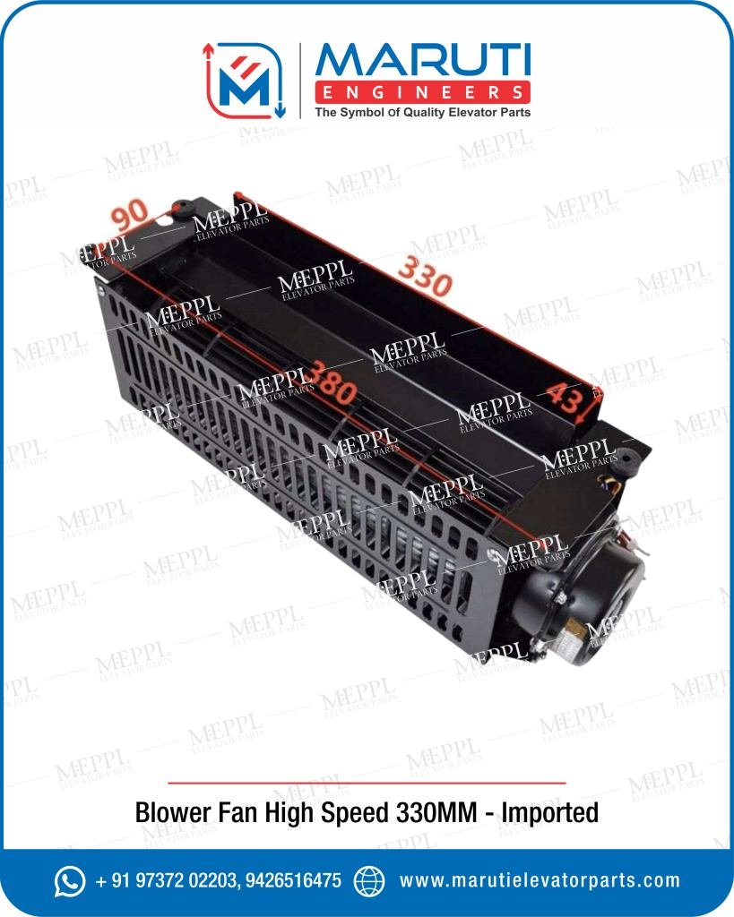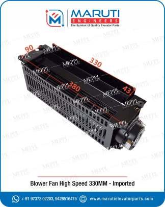 The MEPPL Elevator Blower Fan (330MM Air Flow Cutting Size / 1350RPM) is a premium-quality imported cooling fan designed specifically for elevator cabins. It ensures smooth airflow and optimal ventilation, keeping the cabin temperature comfortable for passengers even during continuous operation. This blower features aerodynamically designed plastic blades, providing high airflow efficiency with low noise and vibration. The 330mm cutting size offers powerful air circulation while maintaining compact dimensions suitable for elevator cabin installation. Manufactured with durable materials and precision engineering, this fan delivers long life, energy-efficient performance, and easy maintenance. Ideal for all types of lift cabins, it ensures consistent ventilation and passenger comfort. Backed by over 25 years of manufacturing excellence, Maruti Engineers (MEPPL) is a trusted name in the elevator industry, offering reliable and high-performance elevator components since 1996.