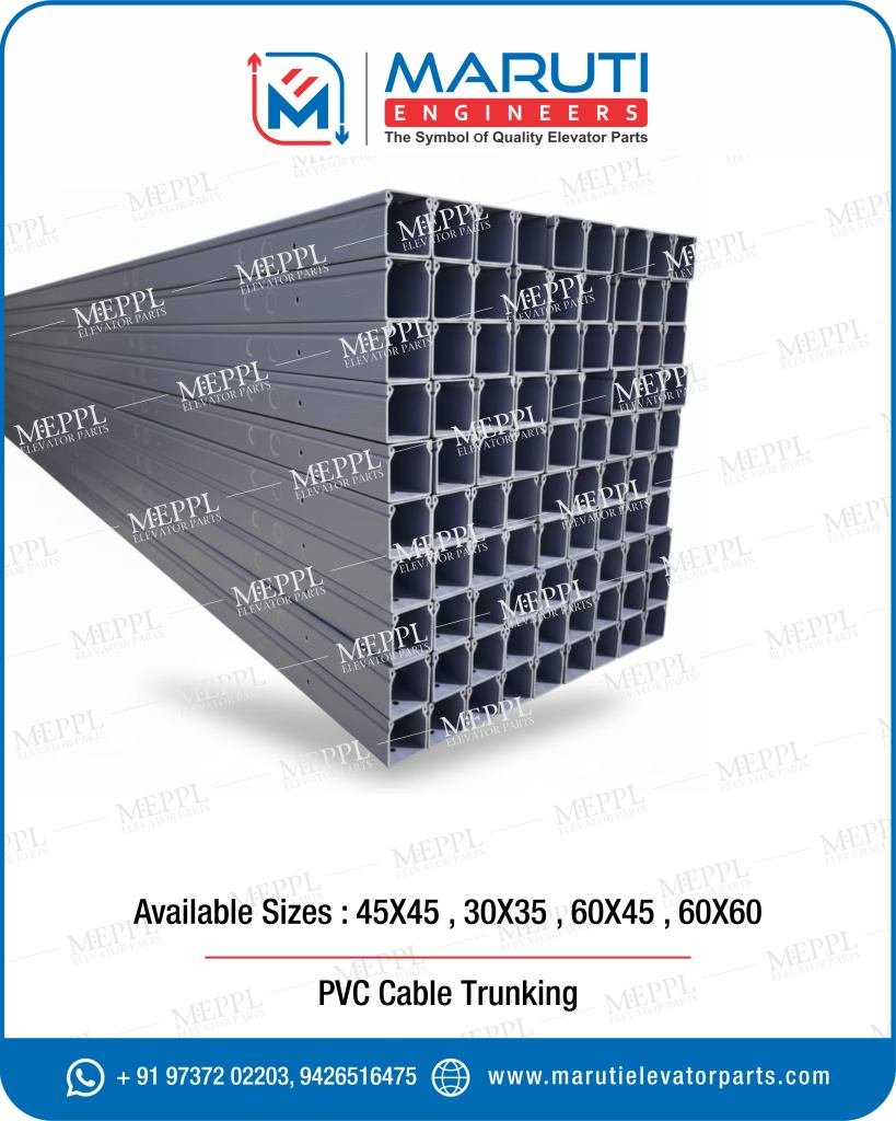 The PVC Trunking 45 x 45 is a high-quality and durable cable management solution specially designed for elevator wiring systems. It provides a safe, organized, and professional way to route electrical cables inside elevator shafts and machine rooms. This PVC cable tray ensures excellent protection for wires against dust, moisture, and mechanical damage, maintaining a neat and efficient wiring layout. Our PVC trunking is made from premium-grade, non-flammable PVC material, offering long-lasting performance and superior insulation. Its precise 45 x 45 mm design allows easy installation and a perfect fit in elevator panels, shafts, and control rooms. This product is ideal for achieving a clean and professional finish in all elevator installations. At Maruti Engineers, under the brand MEPPL, we manufacture and supply top-quality elevator spare parts and accessories. Established in 1996, we have our own production workshop, ensuring strict quality control at every stage. Our commitment to excellence, durability, and customer satisfaction helps us deliver only the best elevator components that meet global standards. Choose MEPPL PVC Trunking 45 x 45 for reliable protection, easy installation, and superior cable management in your elevator systems.