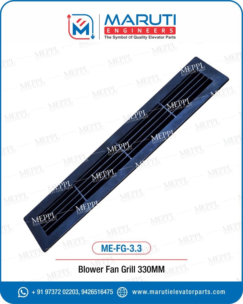 The MEPPL Blower Fan Grill is a high-quality protective accessory designed for elevator cabin blower fans, available in 270MM and 330MM sizes. Engineered for all-direction airflow, these grills ensure optimal ventilation inside the cabin while protecting the fan blades from dust, debris, and accidental contact. Made from durable, corrosion-resistant materials, the grills are lightweight, sturdy, and easy to install on ceiling or side-mounted blower fans. Compatible with plastic and metal blade blower fans, the all-direction airflow design guarantees uniform air circulation, enhancing passenger comfort and extending fan life. With over 25 years of industry experience, Maruti Engineers (MEPPL) provides reliable elevator components and accessories, combining safety, durability, and efficient performance for all types of modern elevators.